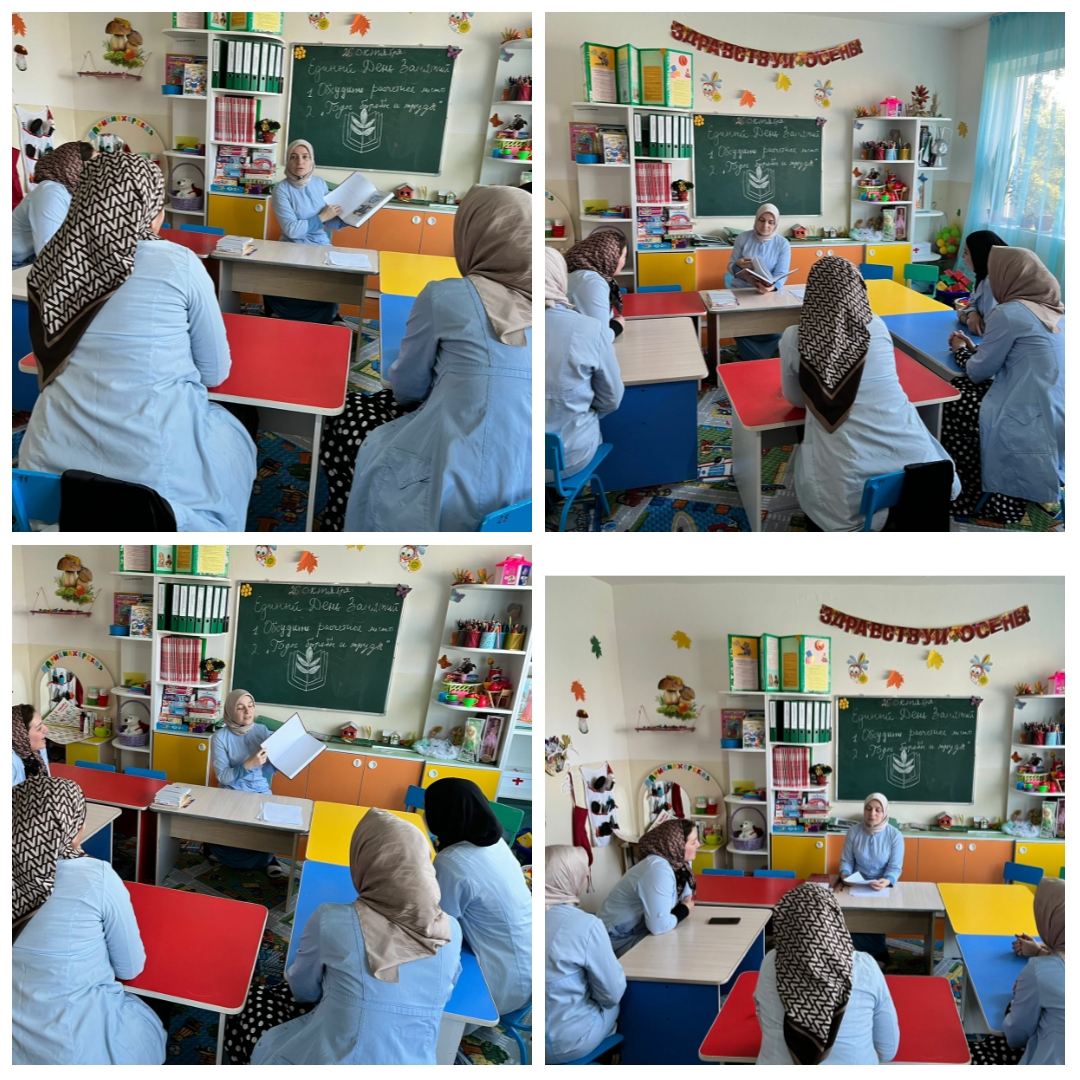 МБДОУ "Детский сад Радуга с.Толстой юрт Грозненского муниципального района " проведен профсоюзный кружок с единой повесткой: "Годы борьбы и труда ".